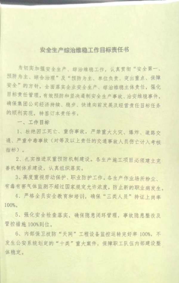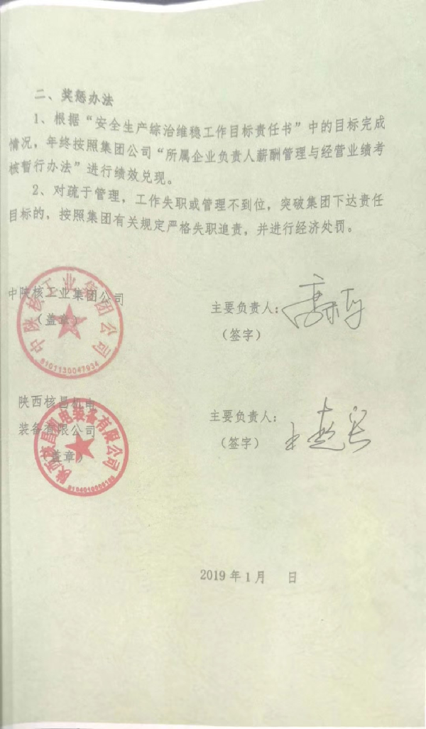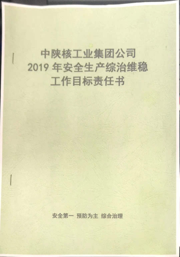 中陜核工業(yè)集團(tuán)公司2019年安全生產(chǎn)綜治維穩(wěn)工作目標(biāo)責(zé)任書